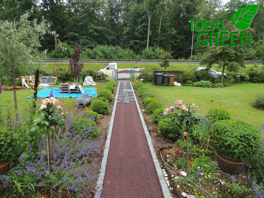 Weg aus Granitplatten Pflasterarbeiten Platten legen 01